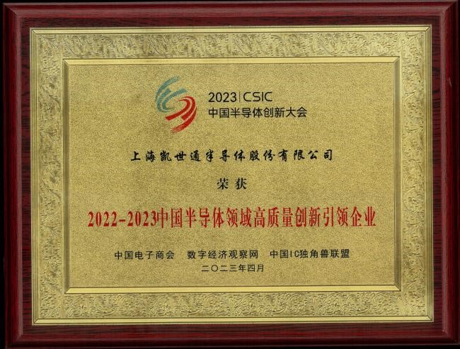 凯世通荣获“2022-2023中国半导体领域高质量创新引领企业”
